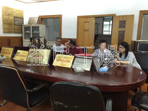 今日,伊朗某公司負責人來我公司考察(chá),對於我公司的整體(tǐ)印象良好,尤其是在設(shè)備(bèi)的精(jīng)細製(zhì)作和公司整體技術實力方麵。該公司負責人當場定(dìng)下(xià)我公司的沸騰幹燥機,對於雙方之間的合作,我司倍感榮幸。今(jīn)後我司定會帶給客戶更好、更先(xiān)進的設備。圖為雙方之間的友好交流: