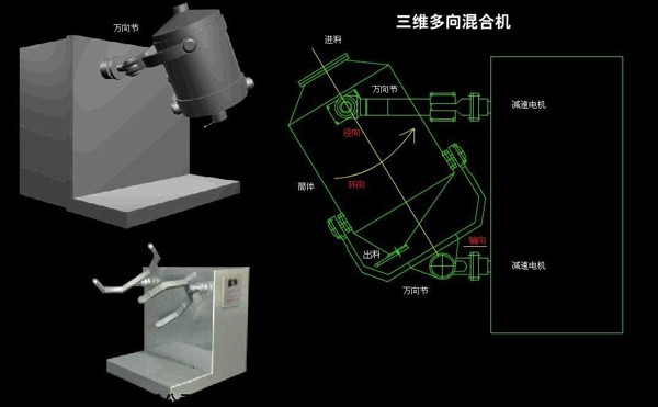 三維混合機的工作機構及獨特的(de)工作(zuò)方(fāng)式
